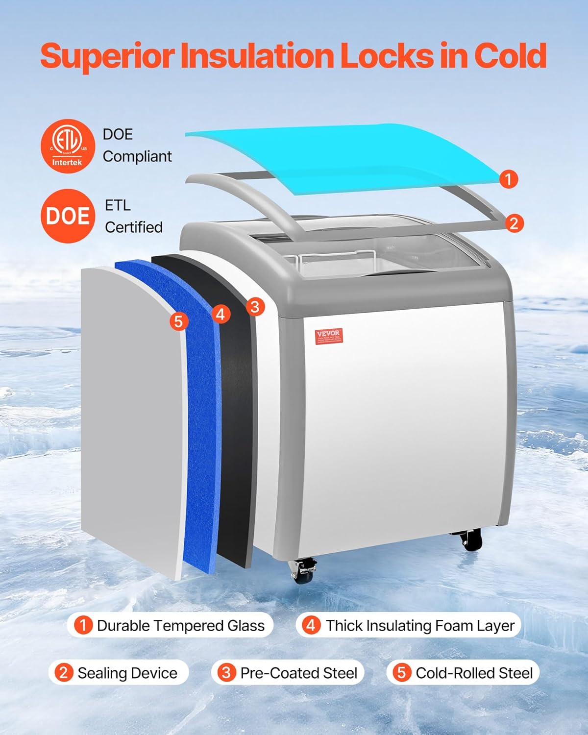 | Included Components | 1 x Commercial Ice Cream Display Case, 1 x Themometer, 1 x User Manual, 2 x Keys |